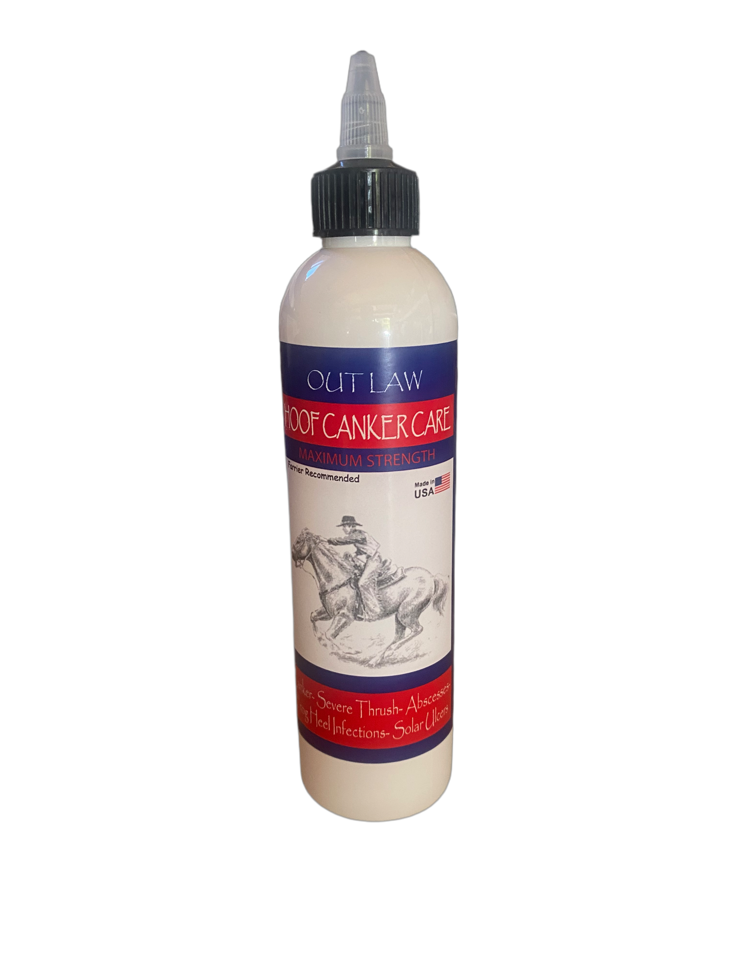 "Hoof infections don’t wait—and neither should you. Outlaw Hoof Canker Care is the professional‑grade topical treatment built tough for the worst cases: canker, abscesses, thrush, and frog or heel ulcerations. Its concentrated formula penetrates deep, wipes out bacteria and fungi, dries out infection, and supports healthy tissue regrowth. Easy to apply, trusted by farriers and vets, and proven to restore hoof integrity. Outlaw Hoof Canker Care—tough on infection, gentle on recovery. Because every step counts."